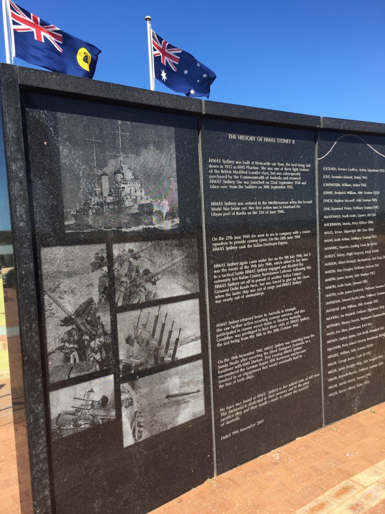 Yesterday we visited the HMAS Sydney Memorial that overlooks Geraldton in Western Australia. It is a stunning- and emotional- tribute to the