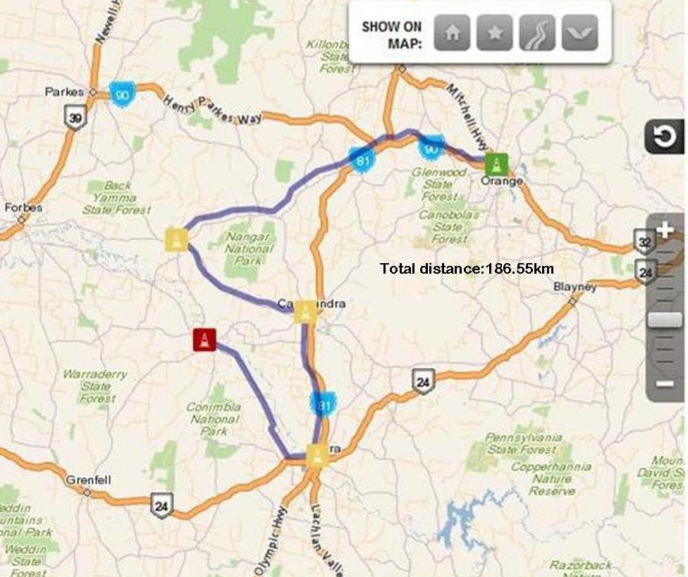 The yellow star shows the approximate location of Stockton Lake, the blue star shows where Lake Brockman (Logue Brook Dam) is situated and the green star is roughly where I camped on the Hamilton River.